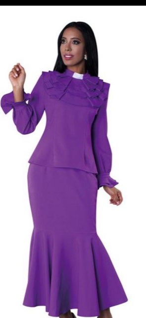 A two-piece skirt set with a Ruffle collar and mermaid skirt.